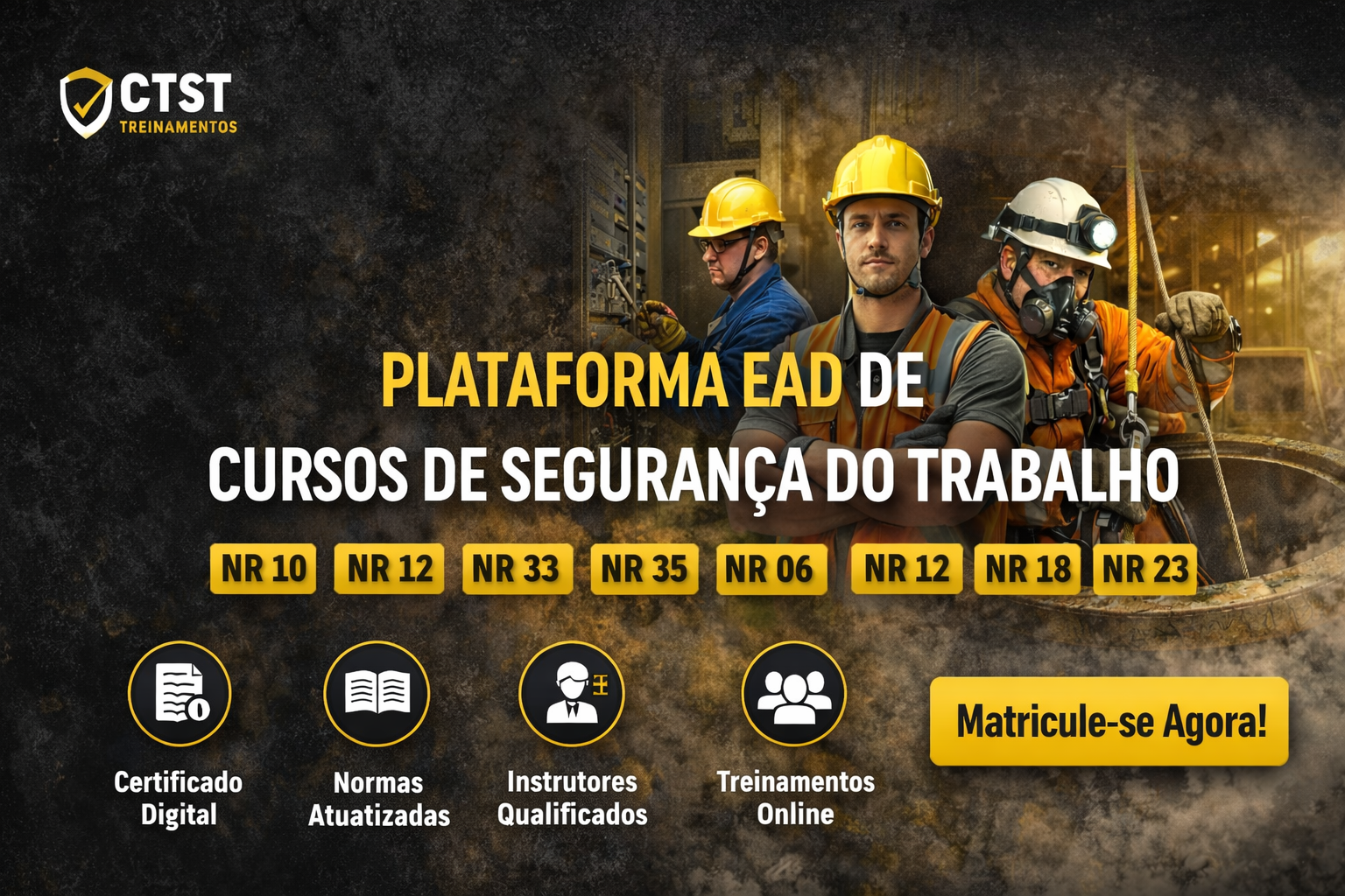 A duração dos cursos varia conforme o conteúdo e a NR abordada. Informações detalhadas sobre a carga horária de cada curso estão disponíveis na página de cada curso.